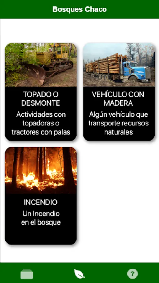 The application allows 3 types of complaints related to the environment of the province of Chaco, Argentina: