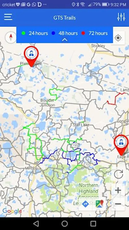 marked snowmobile trails, GTS Trails takes real time data from snow trail groomers to display when the trail was last groomed indicating where to likely find the smoothest