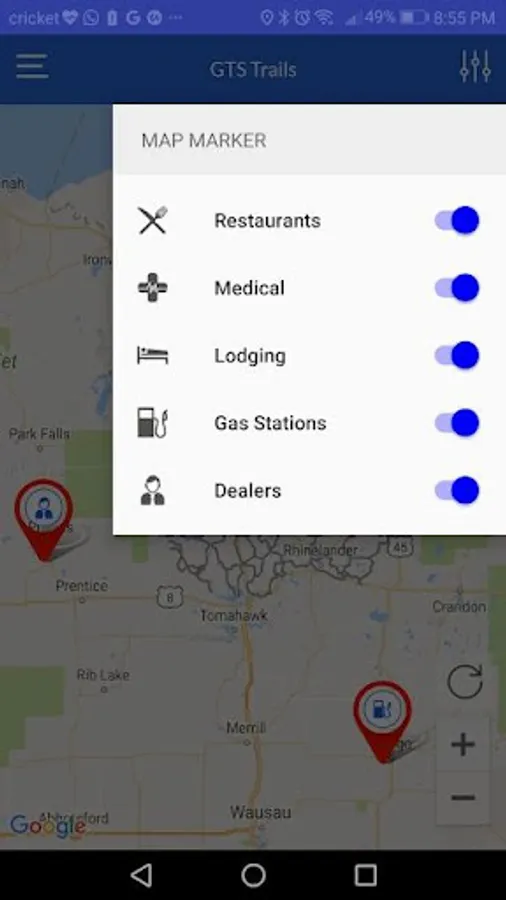 restaurants and bars, fuel, lodging and parts/maintenance locations. GTS Trails by