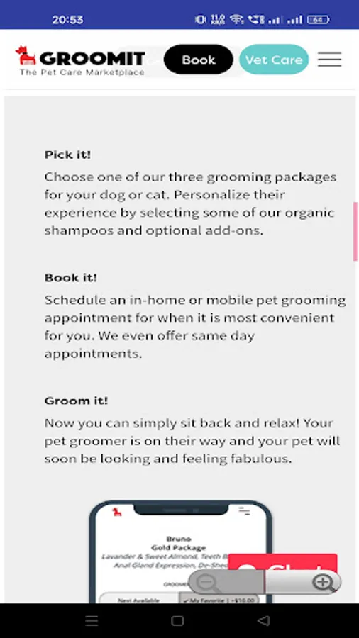 Our app features, GroomIt, where we connect pet owners with groomers in your area. If you own a pet and want quality grooming services, this is the place for you.