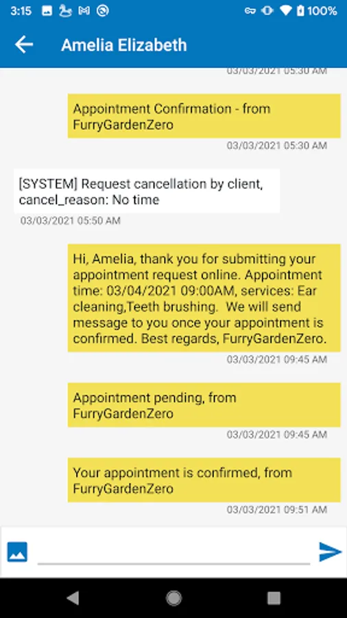 GrooMore sends an auto message and auto email when you create, reschedule or cancel an appointment. It saved a lot of time editing the message every time.
