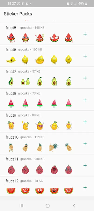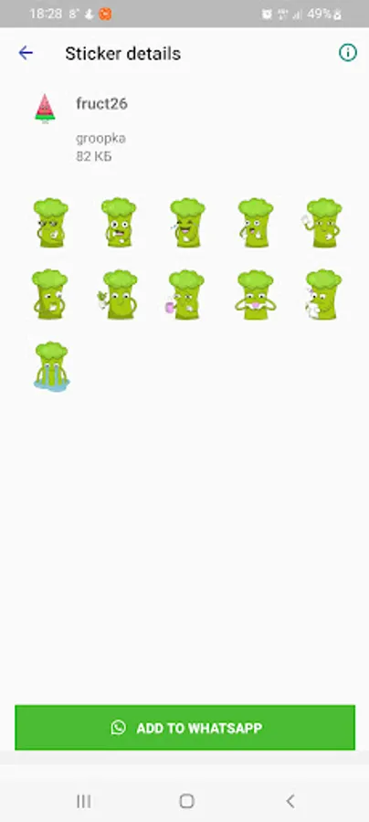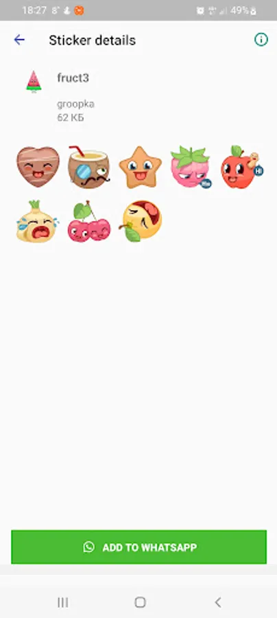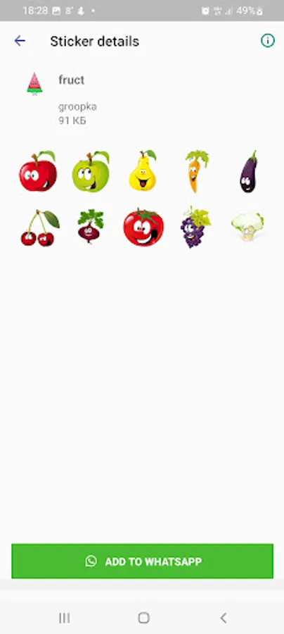Стикеры для whatsapp, содержат стикеры как: ананас, яблоко, груша, брокколи, авокадо и многие другие...
