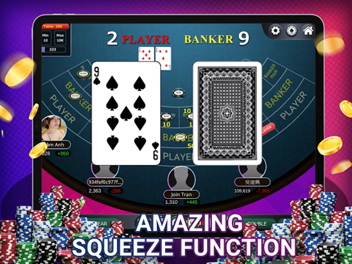 + PLAY AND WIN EACH OTHER: Share and invite friends to join Baccarat 9 to increase the chance of winning.