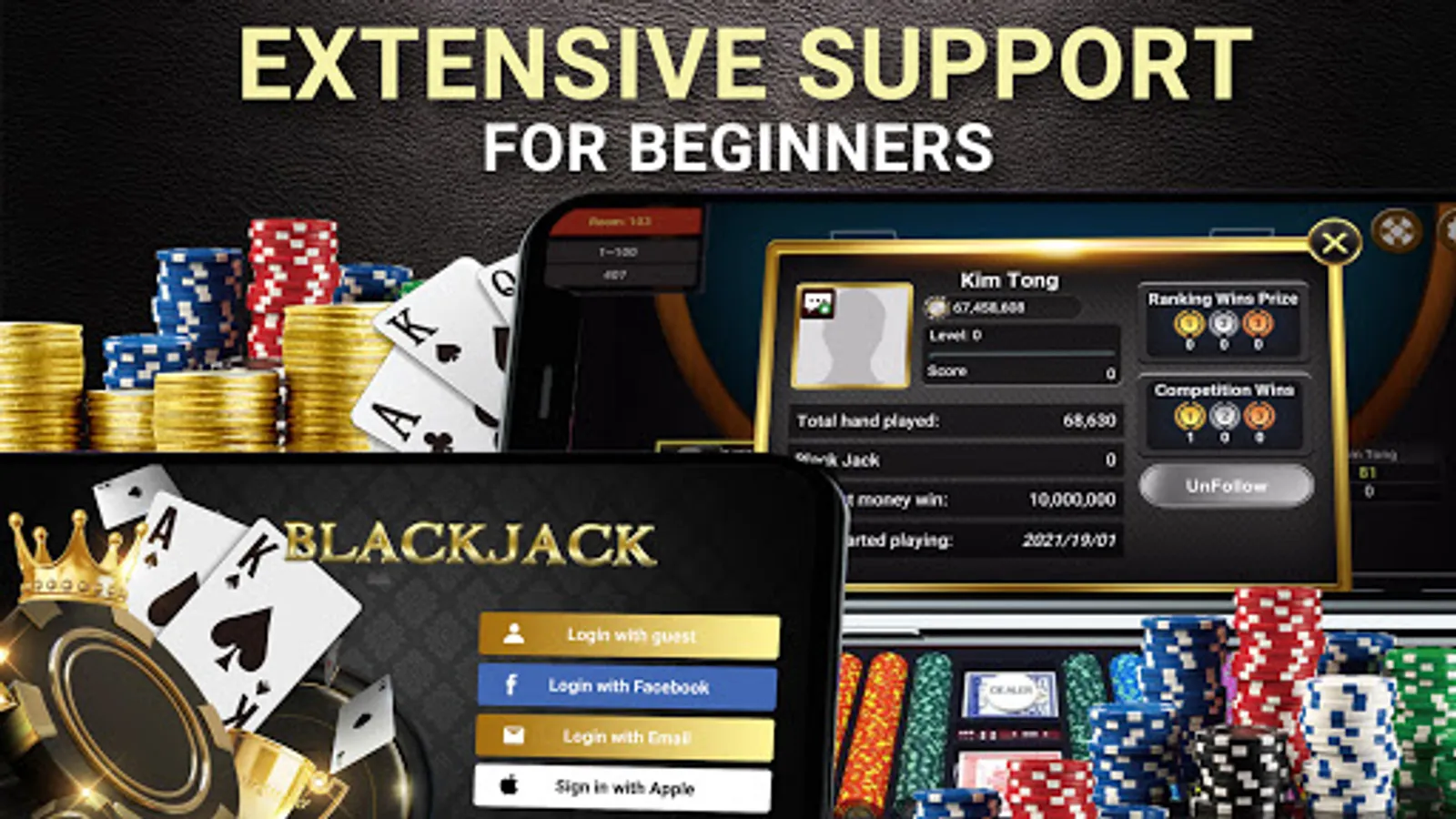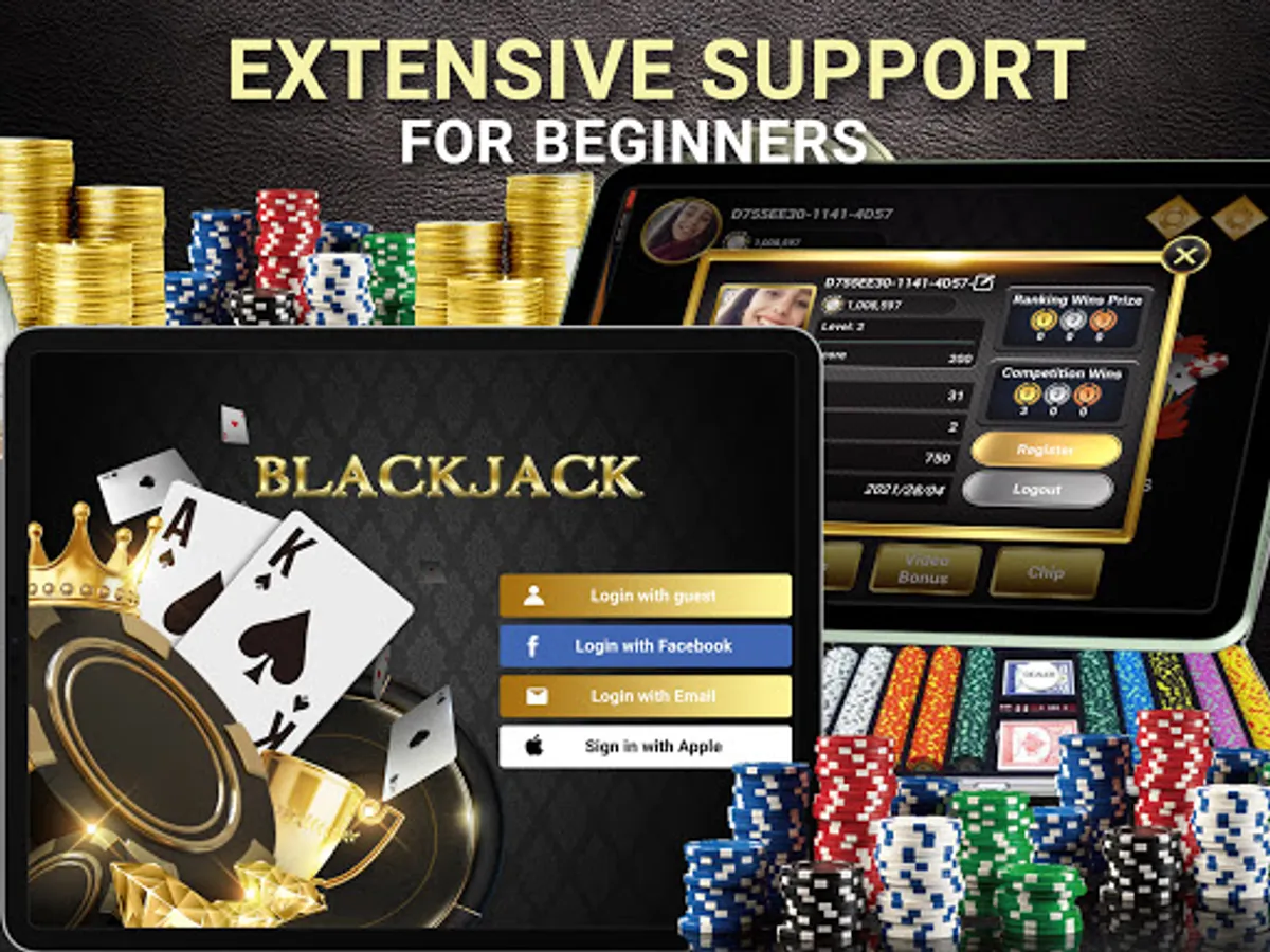 + ONE FOR ALL: You only need one account to play on all different devices. Your account will be automatically stored and restored easily when changing devices. Play Black Jack on your smartphone and continue the progress of playing on the tablet without losing any data.