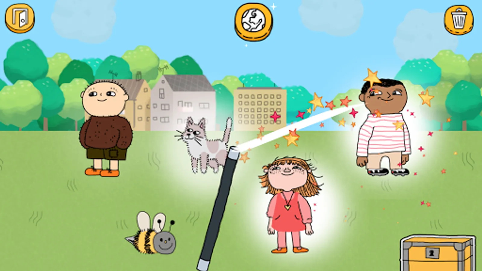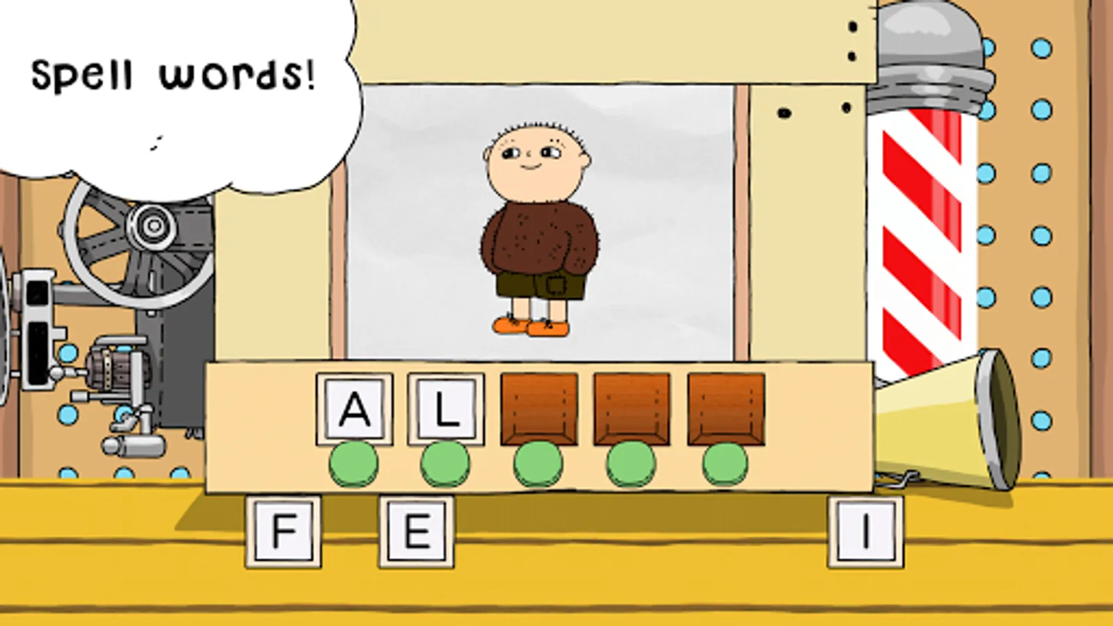Alfie has some extraordinary devices in his room: a letter tracer, a word machine and a puppet theatre. With the letter tracer, children will learn the appearance and sound of all letters and train their motor skills and muscle memory by drawing and tracing letters on the screen. Using Alfie's homemade word machine, children will spell new words using phonemes and letter tips. All new words are sent to the puppet theatre, where children use their creativity and imagination to tell fantastic stories. This playloop, with concrete results, has a motivational effect and helps children develop their language skills at their own pace.