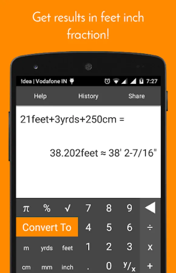 You will be able to use the response from the calculator directly on your measuring tape in the real world. The calculator also allows you to enter in questions in the form of feet inch and inch fraction easily. All of this makes this app the best measurement converter there is on the Play store.