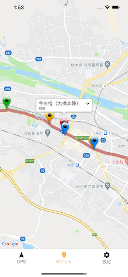 This app points from Edo Nihonbashi to Nikko Shinkyo.