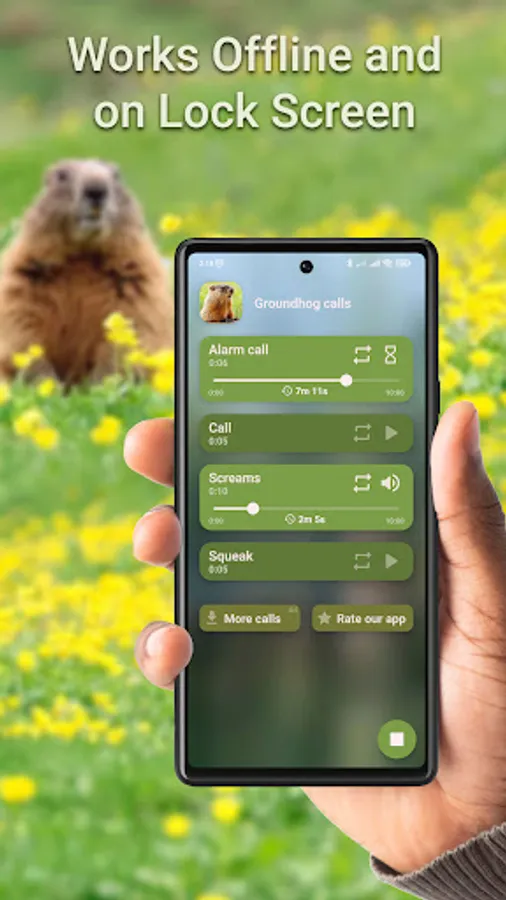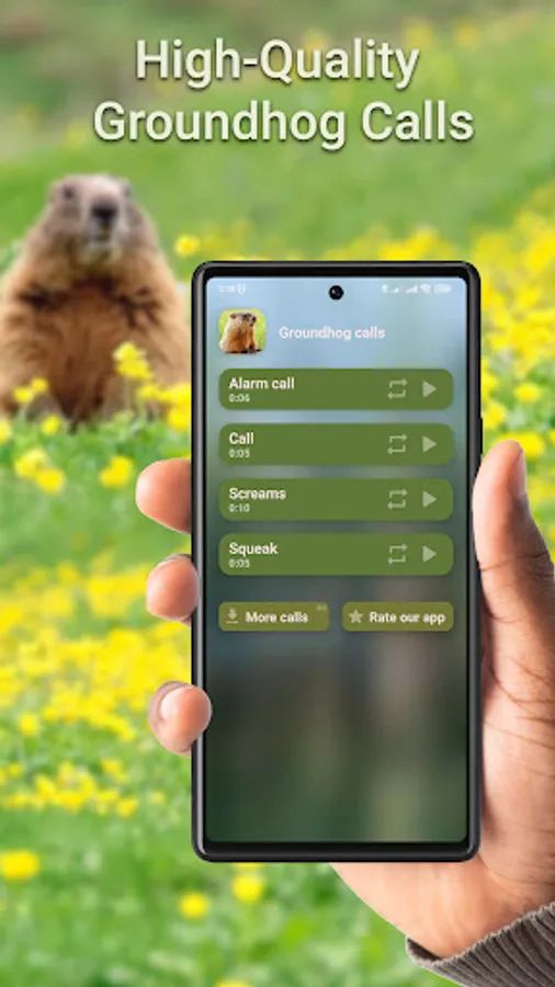 Groundhog hunting calls is a app with a variety of high quality groundhog calls. Get hunting calls and harvest a productive season.