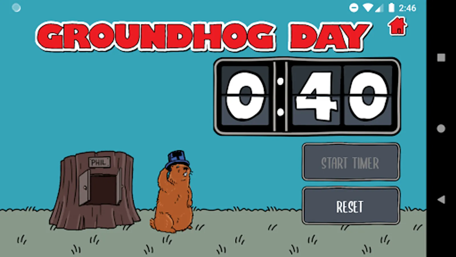 Wake up and relive Groundhog Day again and again with this 60-second musical, polka countdown timer to use in Groundhog Day: The Game: a cooperative tabletop game that takes you on Phil Connor’s journey from cynical weatherman to a more charitable and kind person. This app replaces the sand timer in the tabletop game and adds a festive polka song, an animated groundhog, and a visual countdown timer that looks like the iconic clock from the movie!