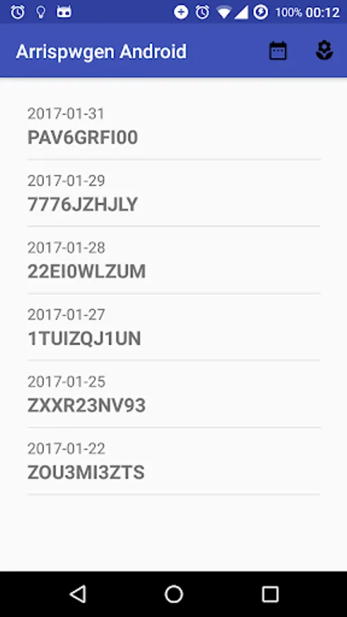 This application allows you to generate passwords for various Arris cable modems, for the current day or a range of days.