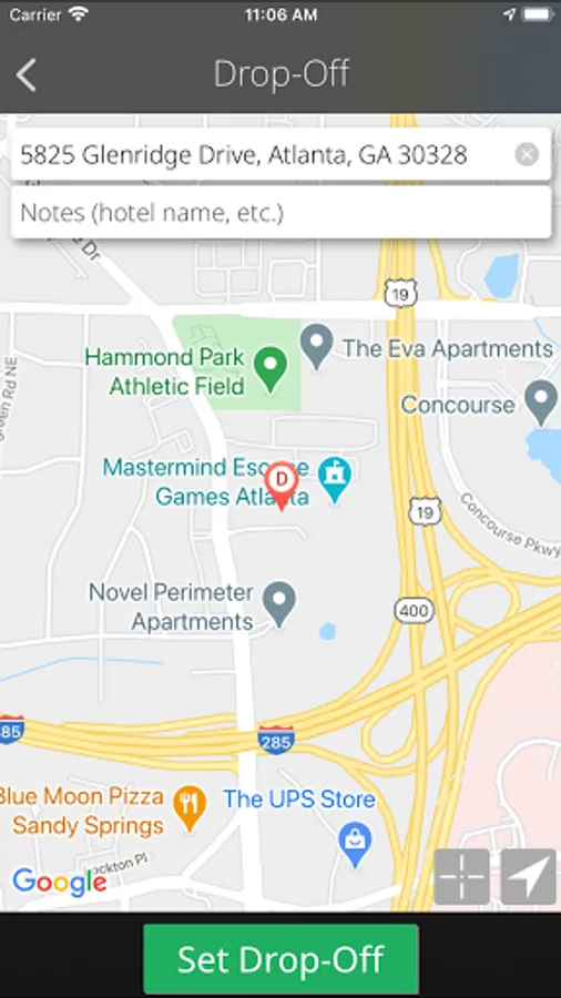 • Select pickup and drop-off locations visually without typing, on the map, even if you do not know the exact location.