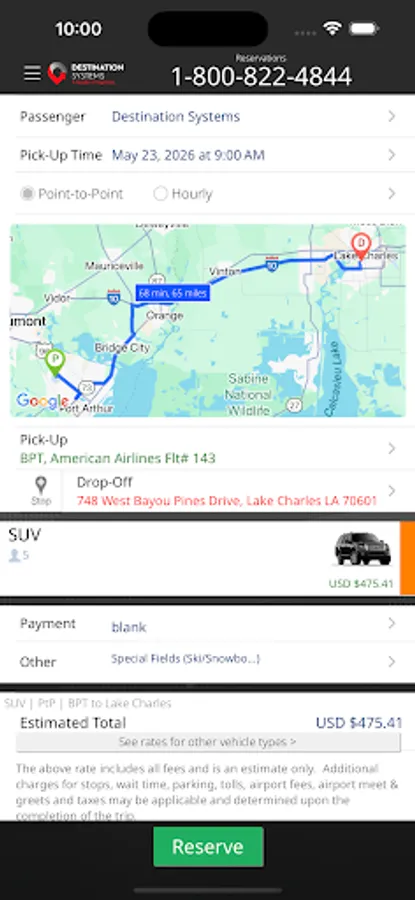 Ride with Destination Systems! Book a new ride, manage existing reservations, and track your driver.