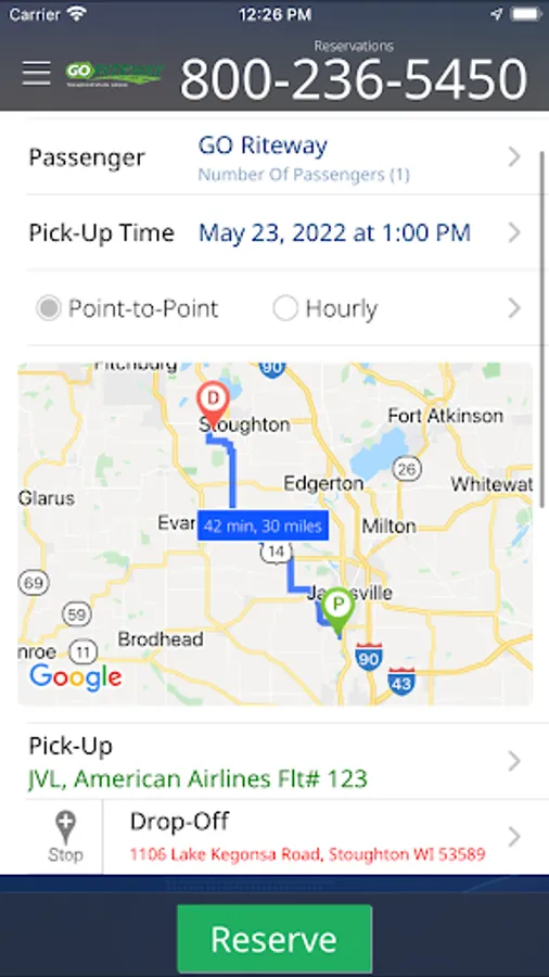 GO Riteway is an app to get a quote, book a ride and manage your ground transportation in sedans, SUVs and vans.  Book a vehicle with a touch of a button and your driver will arrive at your door and deliver you to your destination safely and stress-free.  You can make reservations for service to and from locations in Wisconsin and northern Illinois including airports, hotels, homes and businesses.  Once booked, reservations for your sedan, SUV or van can also be managed using the app.
