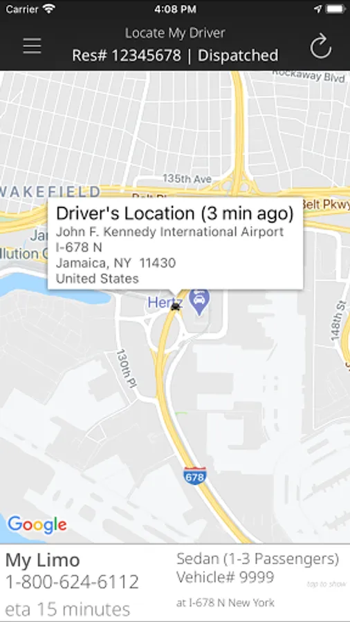 • Get an ETA for your chauffeur and check the progress of your car live on the map.