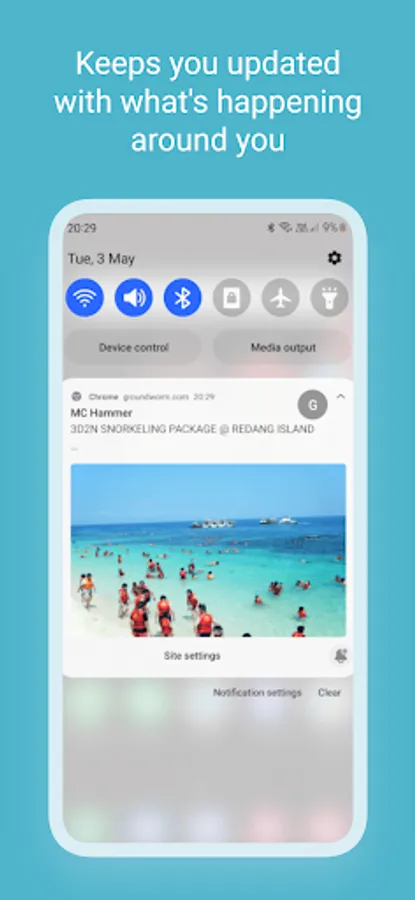 * Get notified by push notification to know what is happening around you
