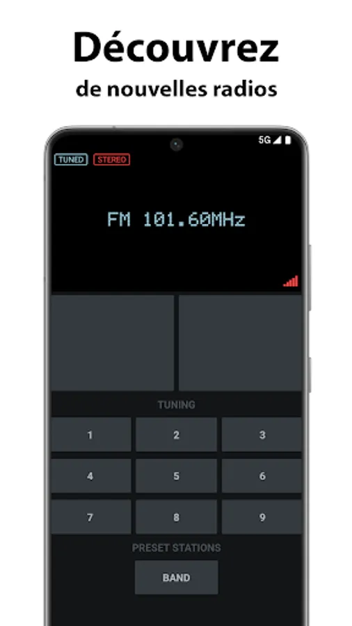 Originally dedicated to FM radios in Paris, TUNED allows you to choose between several local bands. If your local FM is missing, send us a request and we will add it! 😊
