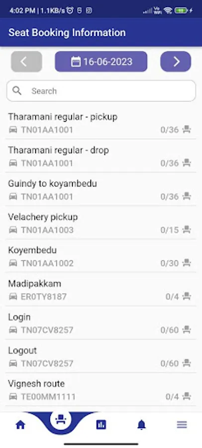 This application we have to show the current route list and summary of the route and show the seat booking information of the vehicle.we have to show the reports also.