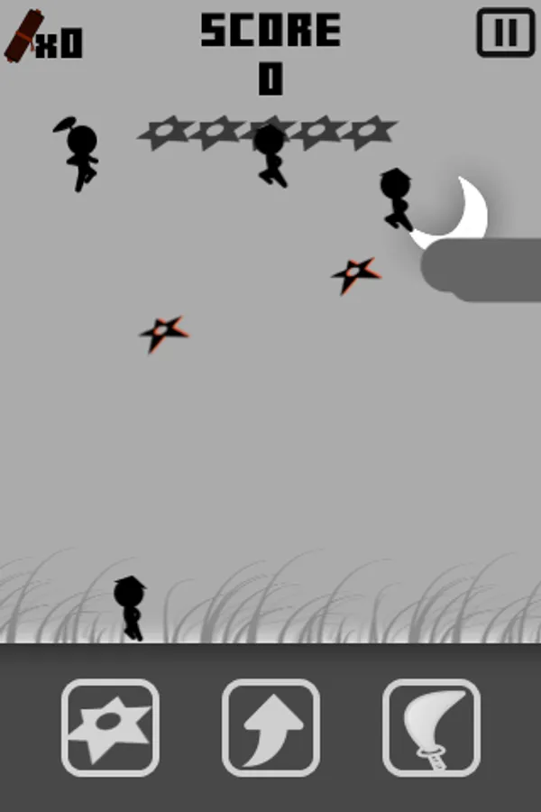 2. tap "shuriken" button - shoot. (can knock down enemy body and shuriken)
