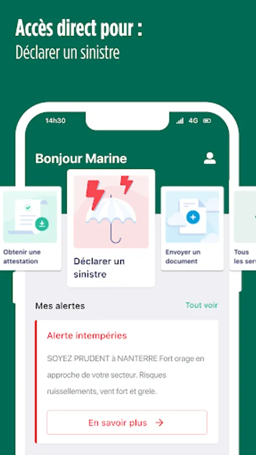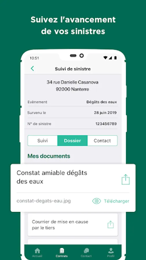 Declare a car or home claim, complete your file and follow its handling directly in your application.