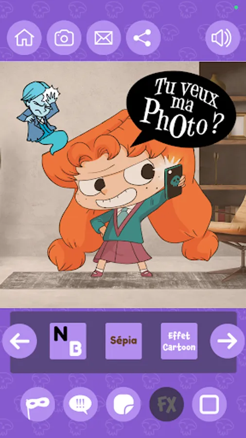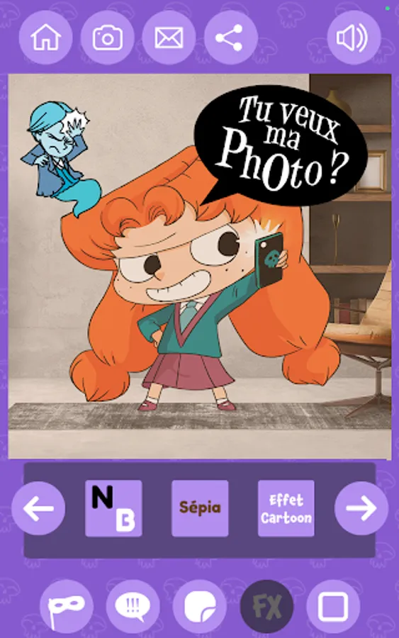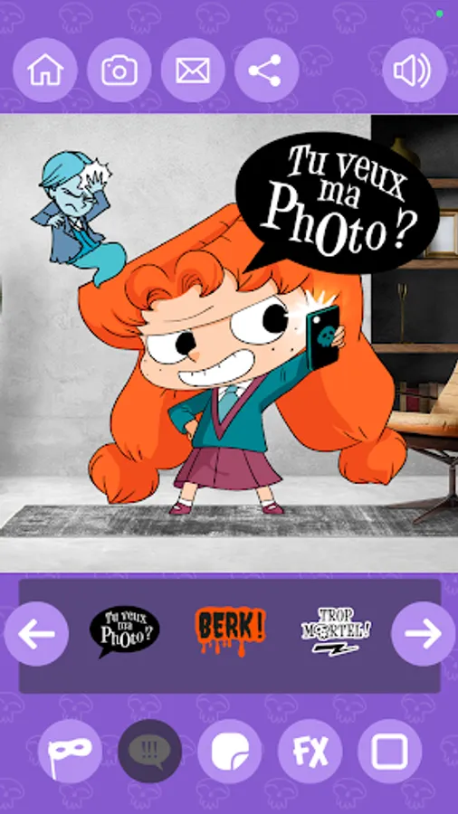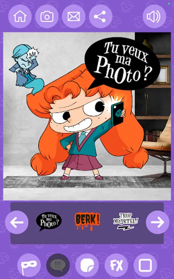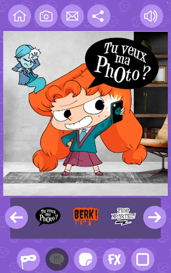 The official Mortelle Adèle photobooth has more than 70 elements to personalize your photos.
