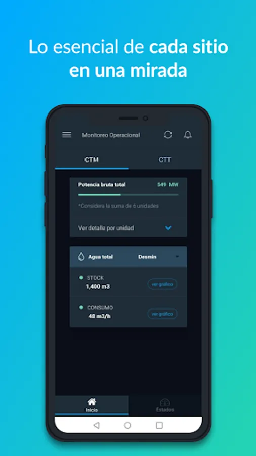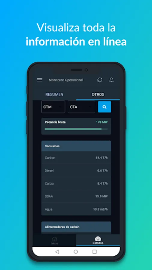 The Operational Monitoring application allows obtaining information on the status and main operational parameters of ENGIE Energía Chile's thermal units