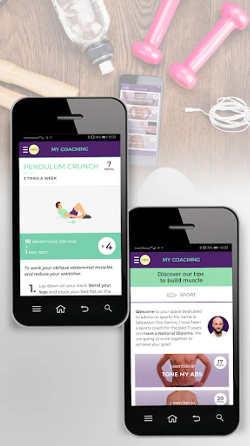 Enjoy new exclusive contents in "My coaching" section. To help you achieve your goals and feel good in your body, get some fitness exercises from Sebastien, a state patent graduate and coach for 11 years. Do not wait, good luck!