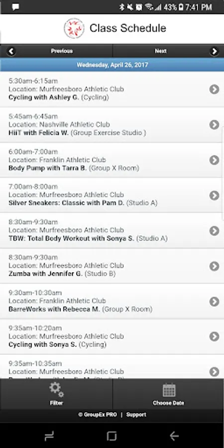 Athletic Clubs of Tennessee Group Fitness Schedule includes real-time schedule with up-to-date sub information. Also includes Email a Friend and Add to Calendar options.