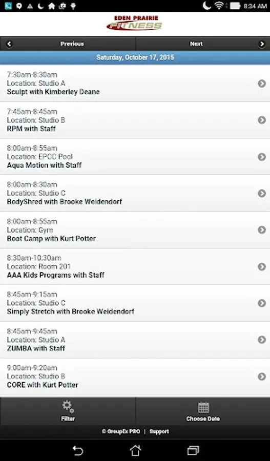 Group Fitness Schedule for Eden Prairie Community Center. Includes up-to-date class schedules as well as current sub information.