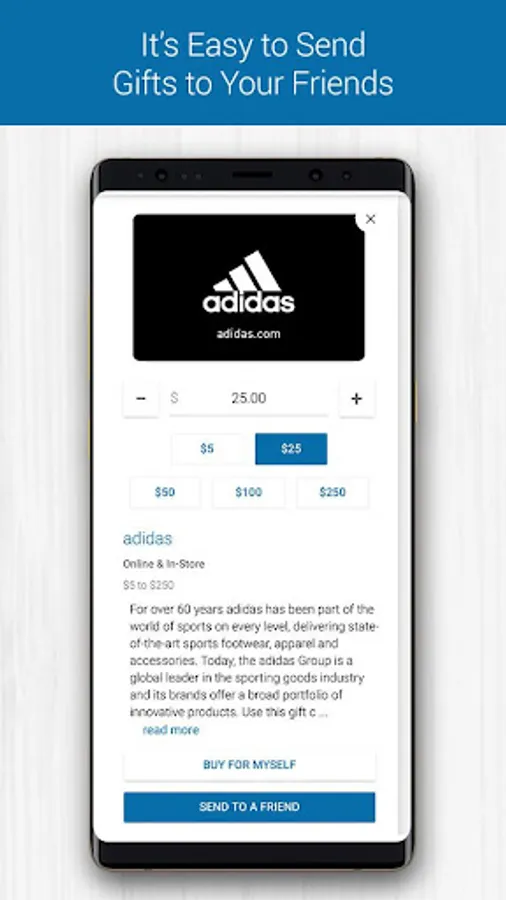 Give personalized eGift Cards for any occasion. Choose a recipient from you address book, add an animated eGreeting card and a message, and even a photo from your gallery. Send via email or SMS. The perfect last-minute gift!