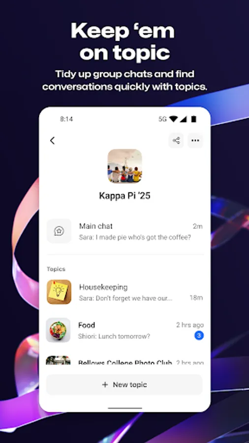 You’re in charge! Choose when and what type of notifications you receive. Mute specific chats, or the entire app – you can even leave or end group chats.