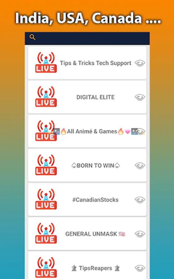 - With each selected category you will get a list of channels with the interest choosen from the category list