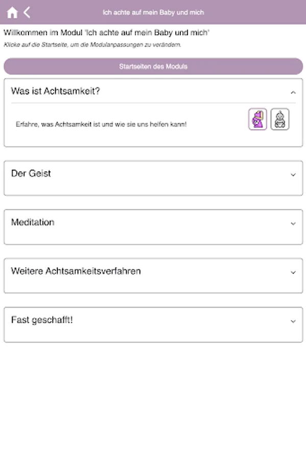 With a mixture of podcasts, text, exercises and small games, the acquisition of information should be made easy for you. You can transfer all exercise content from the app directly to your own everyday life.
