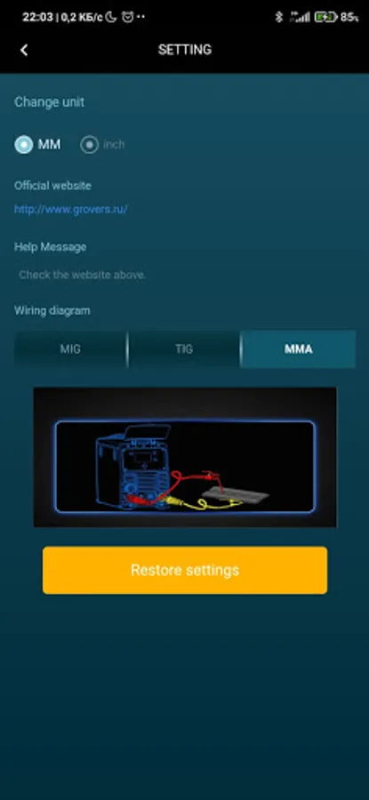 Испольльзуется для управления настройками аппарата с помощбю телефона