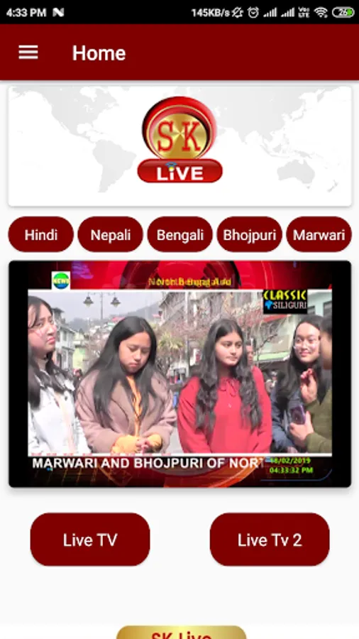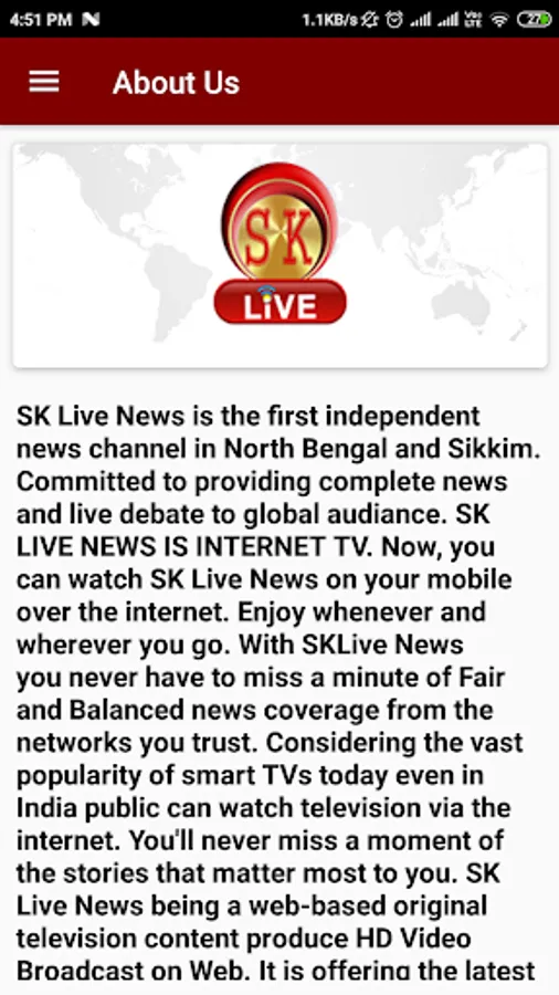 News bulletin to 30 minutes in each language 3 times daily. The news covers all that is happening on the scene of the North Bengal and Sikkim events and scenes in all political issues, social, economic and cultural sports. SK Live is constantly updating with top news. The headquarters is located in Siliguri. As broadband bandwidth began to increase in speed and availability, delivering high quality video over the Internet became a reality. Acknowledging the news requirement in the innermost part of this region.
