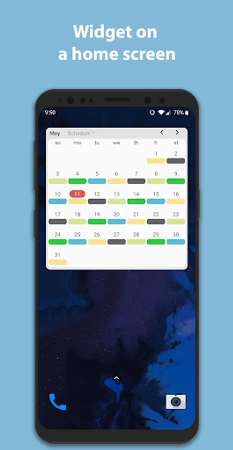 Simple Shift helps you to display your work schedule, no matter how complex your working pattern is. It is suitable for both recurring schedule and for schedules without repetitive shifts. There are no complicated settings and everything is simple and concise. One of the main advantages of Simple Shift is the ability to simultaneously display up to 3 different schedules on the calendar with the ability to quickly hide and display them. The maximum number of schedules is 7. Mark your vacations, days off, various events. Track your working hours and earnings. The built-in alarm clock will keep you from oversleeping work. And most importantly - you will not find any ads here.