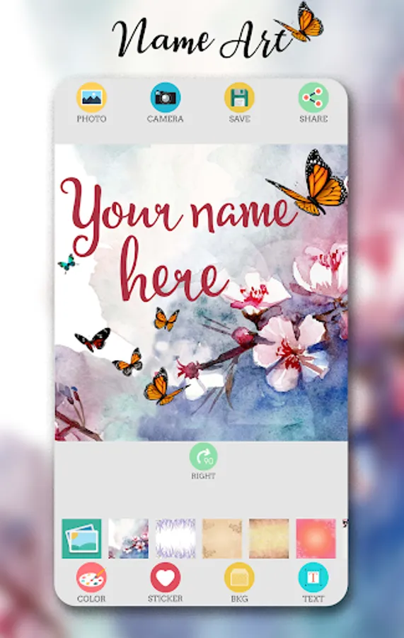 Send your feelings to your lover, your father, your mother, your with by use Name Art Focus Filter. Write any text, decorate it with font, color, sticker items and send to every one with love. Addition you can add your photo from gallery or take new photo, change background with blur photo and more...