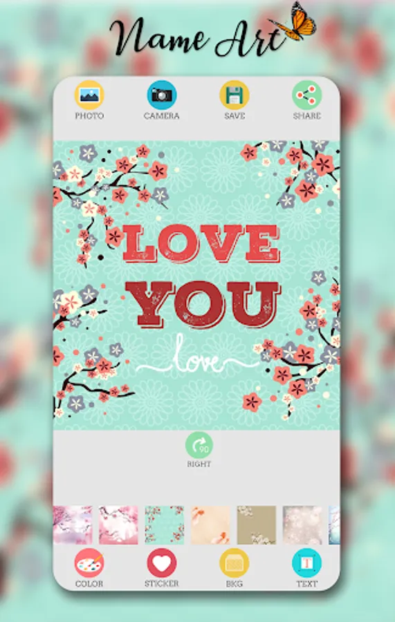Create awesome, amazing and beautiful love card with Name Art - Focus Filter. With this app you can decorate and stylize any text you write such as your name, your dear name, your mother name, father name, friend name, your nick name,... With text you can choose your love font, color, edit size text, drag, rotate your text. After that you can decorate it with different decorative item as feathers, love items, art item, love stickers, color brush, color filter, heart shapes.