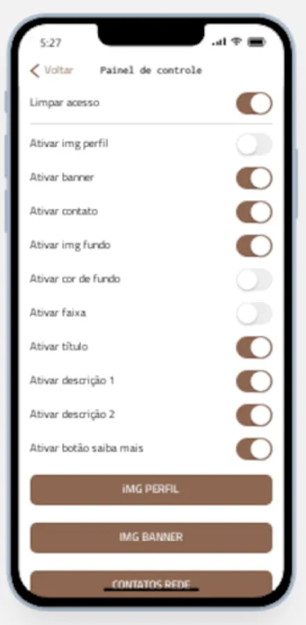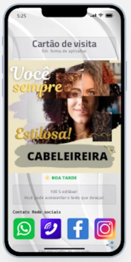 You change profile picture. You change background image, or put a color of your choice. You decide how many and which contacts and social networks to put. You change banner image. You change footer track image. You change Title, Subtitle, Description 1 and Description 2. This card can be shared by whatsapp. You modify the sentence in share. The icon can be changed.