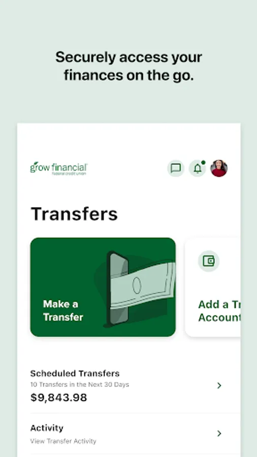 The Grow Financial mobile banking app for Android devices is designed for the way you live. User-friendly features let you take care of your banking business anytime, anywhere, with fingertip ease.