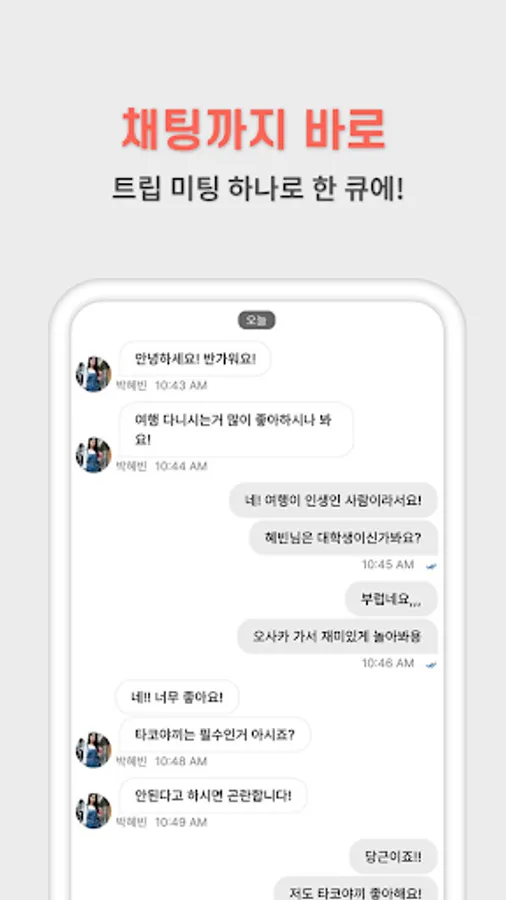 3. Real-time chat function: You can have a real-time conversation with someone you met on a trip or travel with. Send and receive messages freely and get to know each other better.