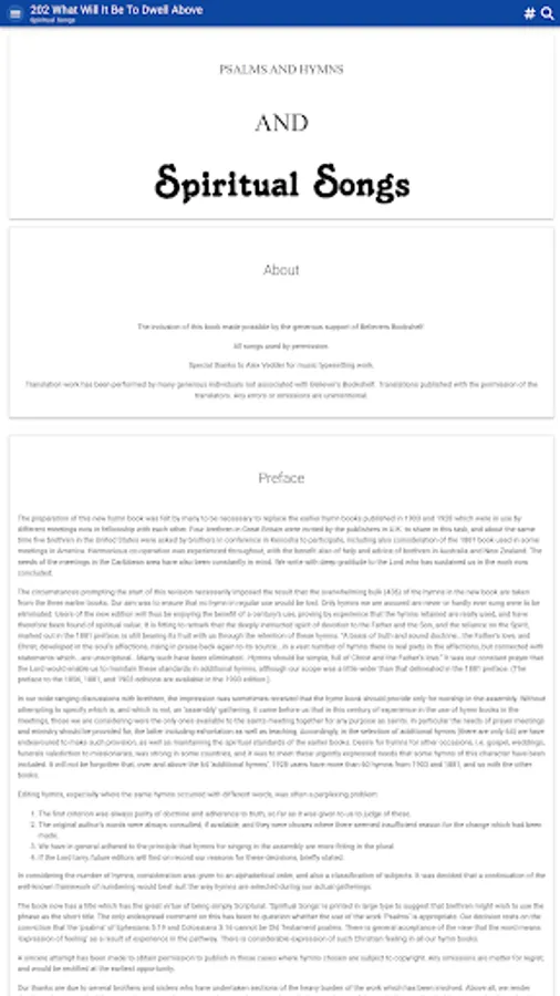 Easy access to songs and hymns glorifying our Lord and Savior Jesus Christ. Contains several hymn books including: “Songs and Hymns and Spiritual Songs”, “Growing Hymnal” (a collection of hymns from the public domain), and more to come. Includes an easy to use Index which allows you to search by Title, Author, Composer, or Tune.
