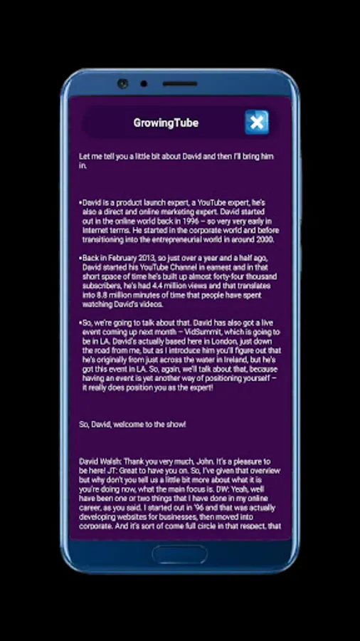 GrowingTube is an app Which is about an Interview between a professional content creator and a journalist. This Interview is very important for a new one. This app teaches you a full guide of video content creation step by step.