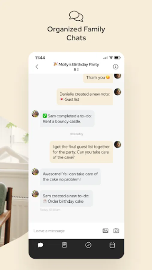 Improve the way your family communicates. Family chats are based around household topics to keep everyone organized and in the loop.