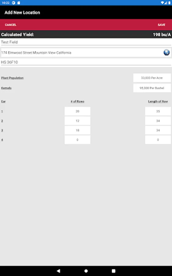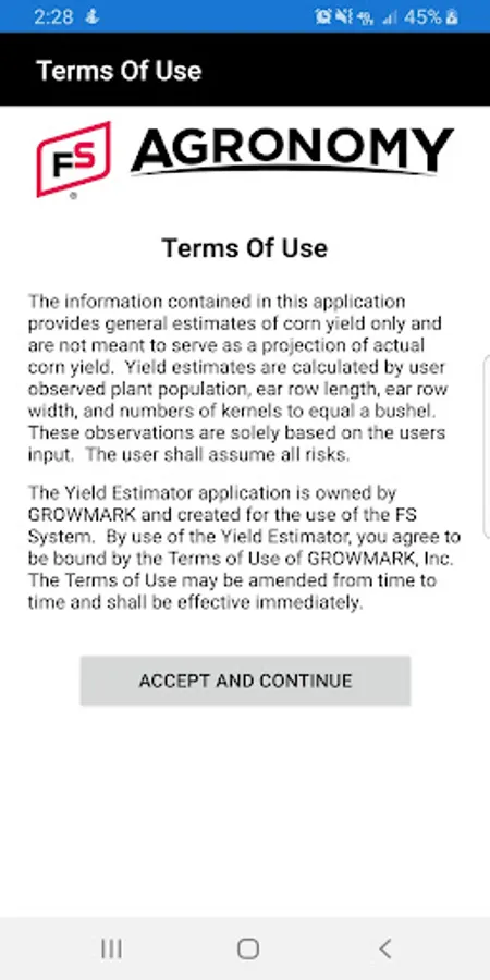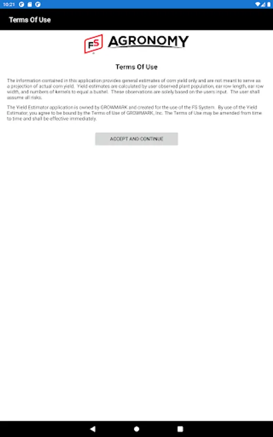 The FS Yield Estimator application brings complex yield calculations to your device. With its easy to use interface, you will be calculating your estimated yield in no time capturing ear kernel length and girth, plant population, and kernels per bushel. In addition, using your device's GPS, the FS Yield Estimator can georeference each estimation.