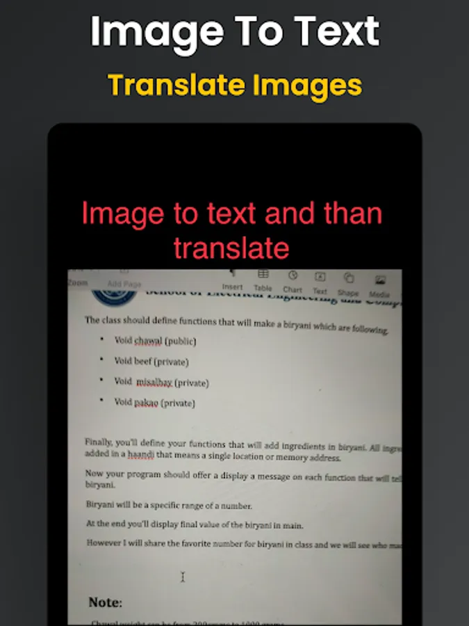 Now you can capture the image with your camera live and then the app will capture the complete text from it and show you and you can translate into any language very easily offline . So you can translate the menus , billboards live with your phone camera with the help of our Offline Language Translator app