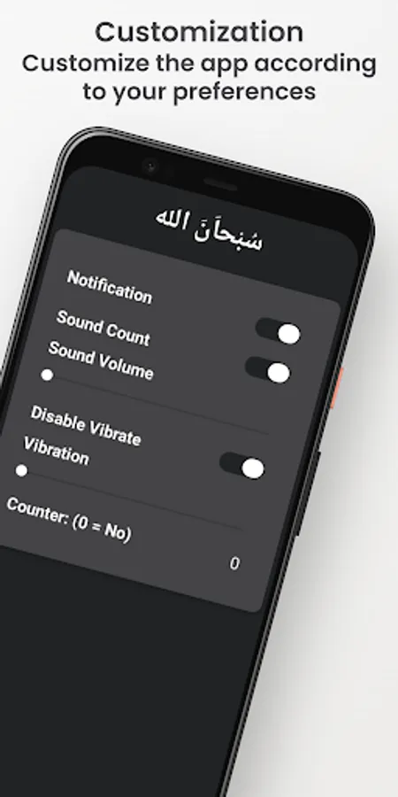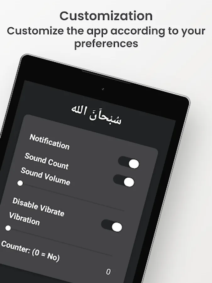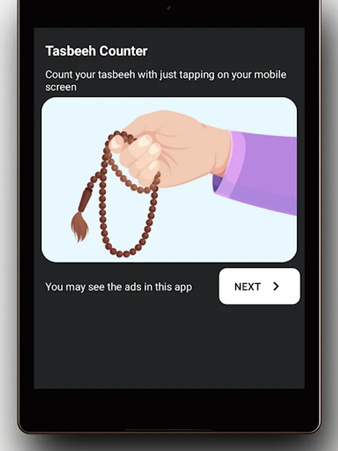 Tap on the screen to start the tasbeeh counter or zikar counter