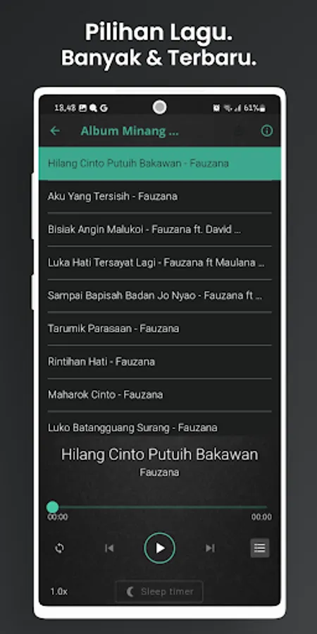 Enjoy a wide selection of Minang songs available in this application. From classic songs to the latest hits, you can find a Minang music genre to suit your taste. The superior audio quality will ensure you enjoy every detail and nuance of your music clearly and immersingly.