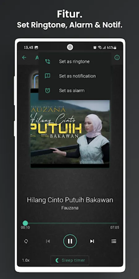Ringtone and alarm settings that can be personalized are also provided in this application. You can choose your favorite Minang song and set it as a ringtone when receiving a call or as an alarm to wake you up with pleasant music tones. With this feature, you can add a personal touch to your Android device.