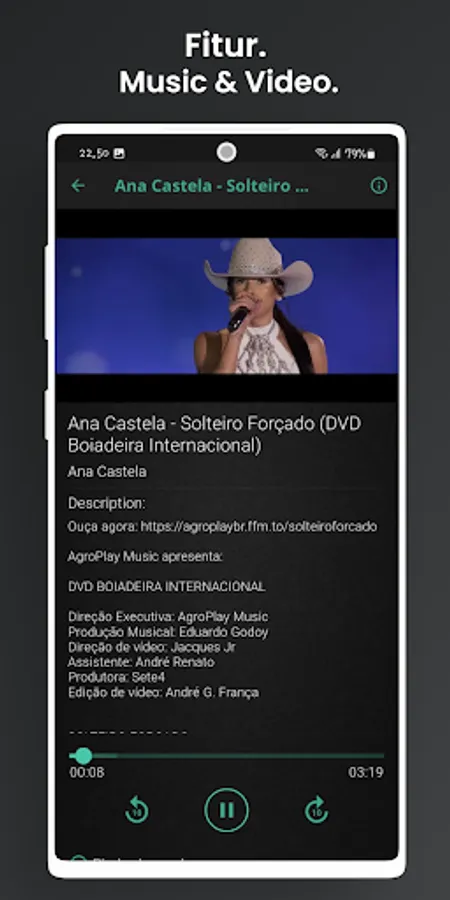 Not limited to audio, "Ana Castela Musica 2023" also supports video playback, allowing you to experience the enchanting visuals of Ana Castela's music videos that perfectly complement her soulful melodies and poetic lyrics.