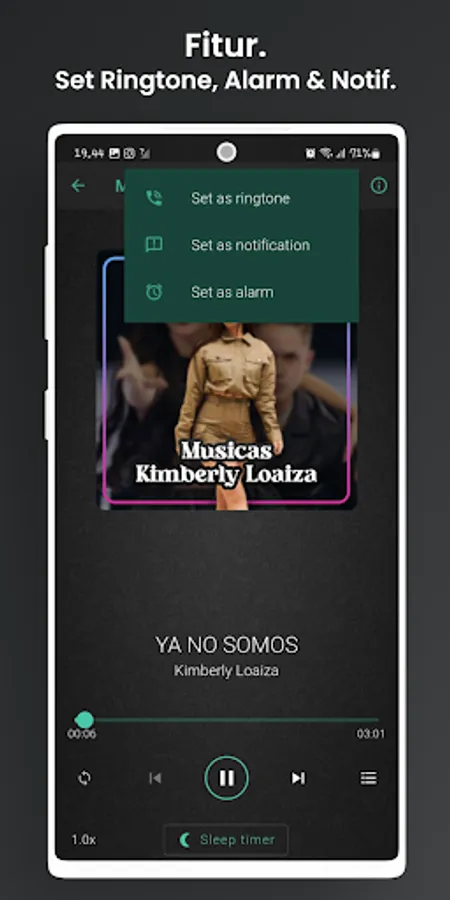 Apart from that, Musicas Kimberly Loaiza 2023 also provides a ringtone/alarm set feature. You can choose your favorite song from Kimberly Loaiza as your mobile ringtone or morning alarm to start your day on high. That way, you can feel the presence of Kimberly Loaiza's music every time your phone rings or the alarm goes off.